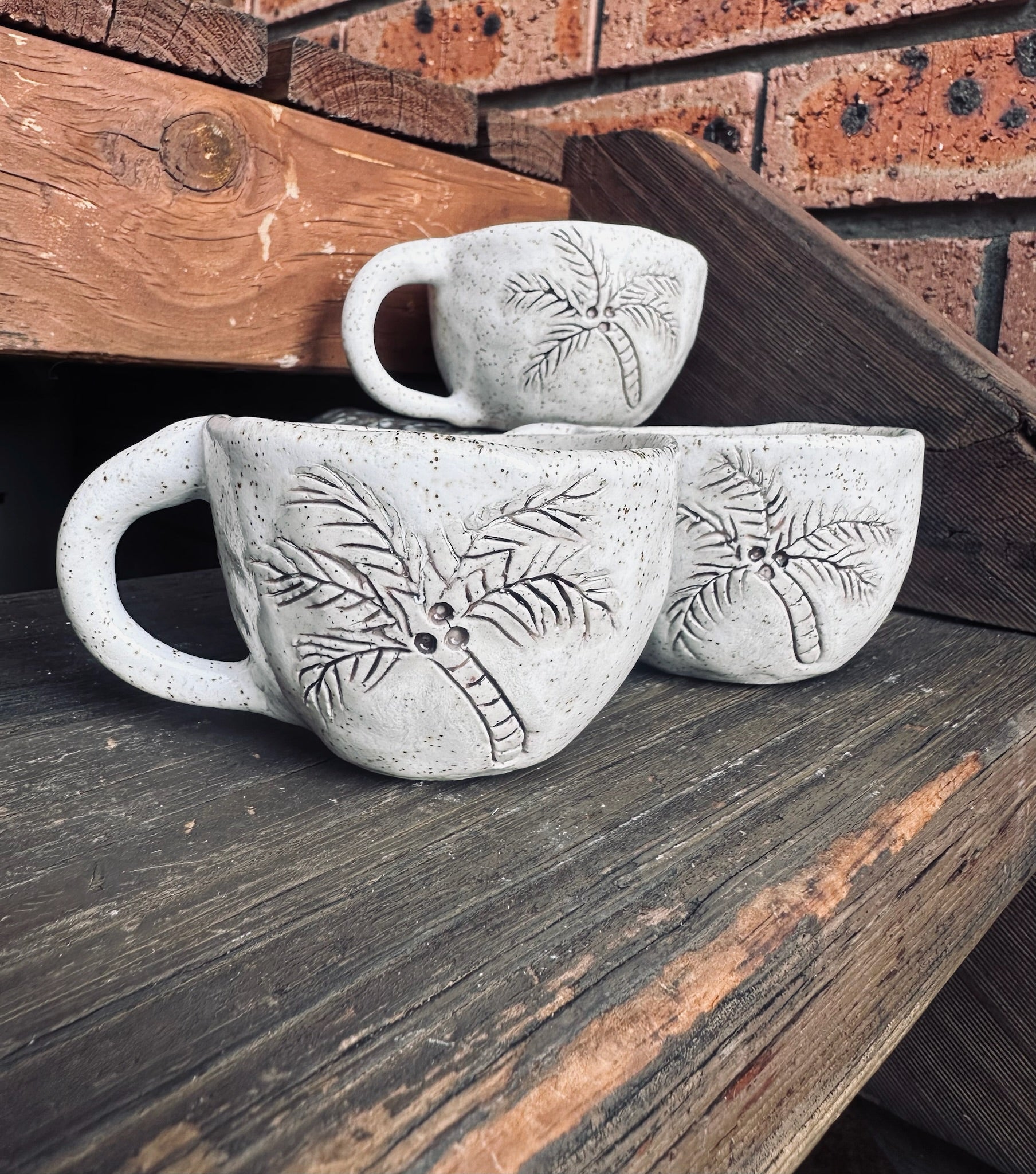 Made from organic white speckled clay , take a moment for yourself to enjoy a cup of what you love 🫶🏼 these beautifully hand made clay cups are designed to fit snuggly in your hand with an oversized handle …