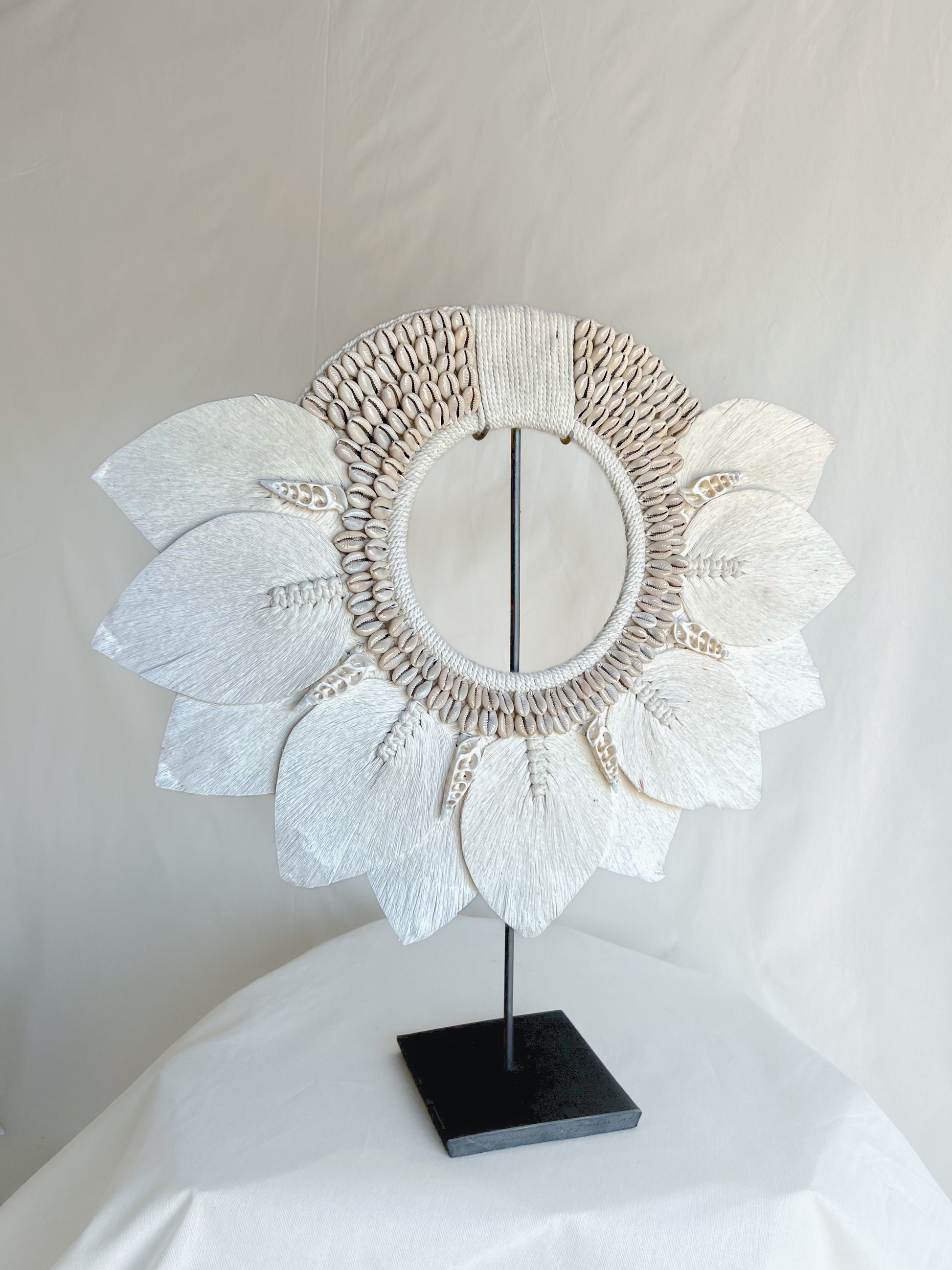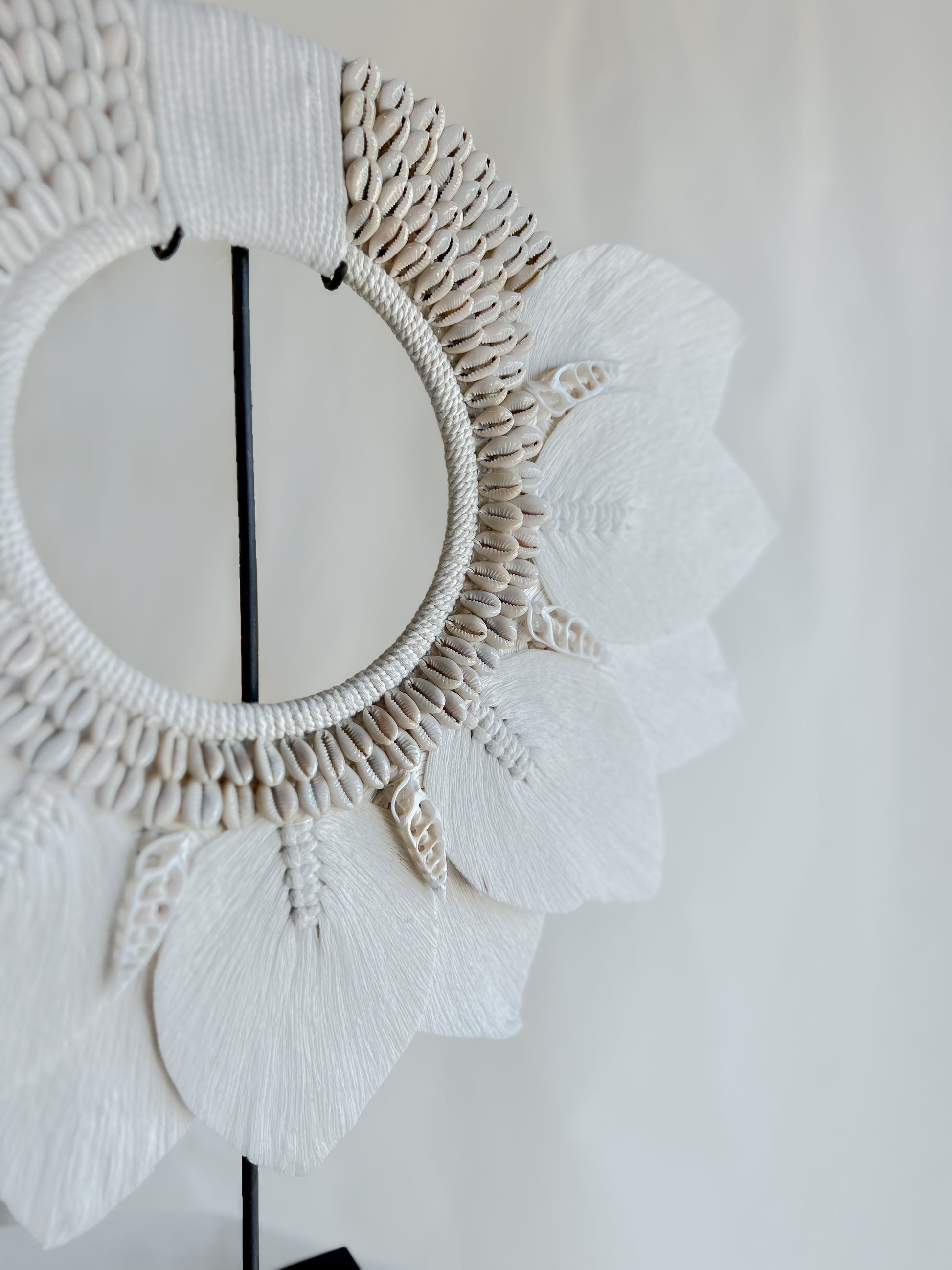 A Beautifully Handcrafted piece made from natural cotton and cowrie shells, this tribal necklace is designed to enhance your space by adding a touch of coastal boho